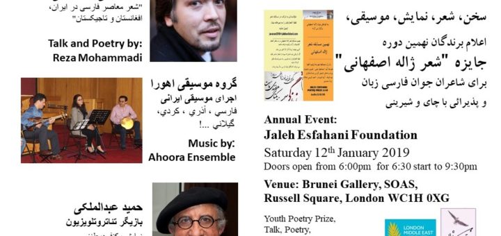 گزارشی از برنامه نوامبر 2014 ششمین برنامه سالانه بنیاد ژاله اصفهانی روز ۲۹ نوامبر در سالن برونئی دانشکده مطالعات آفریقائی و شرقی (سواس) دانشگاه لندن با استقبال زیاد از طرفداران شعر و هنرفارسی برگزار...